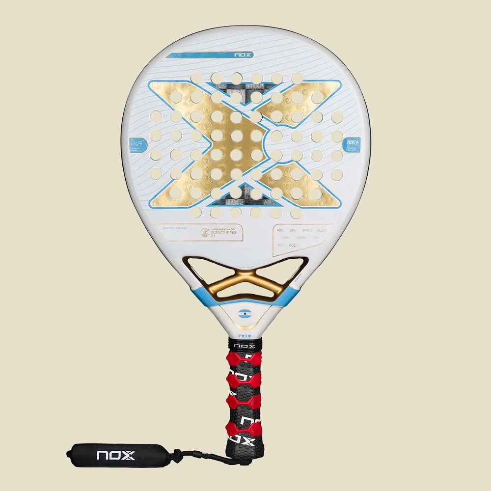Nox AT Genius 18k Alum Buenos Aires Išskirtinis Leidimas yra aukščiausios klasės ašaros formos raketė, idealiai tinkanti ieškantiems tobulo galios ir kontrolės balanso. Jos svoris 360–375 gramų ir 38 mm storis užtikrina standumą ir manevringumą, o vidutinis balansas skatina tiek puolamąjį, tiek gynybinį žaidimą. Dėl dvigubai šiurkštaus paviršiaus (Spin 3D centre ir smėliavimo apdailos kraštuose) ji leidžia atlikti tikslius smūgius, išlaikant kontrolę.