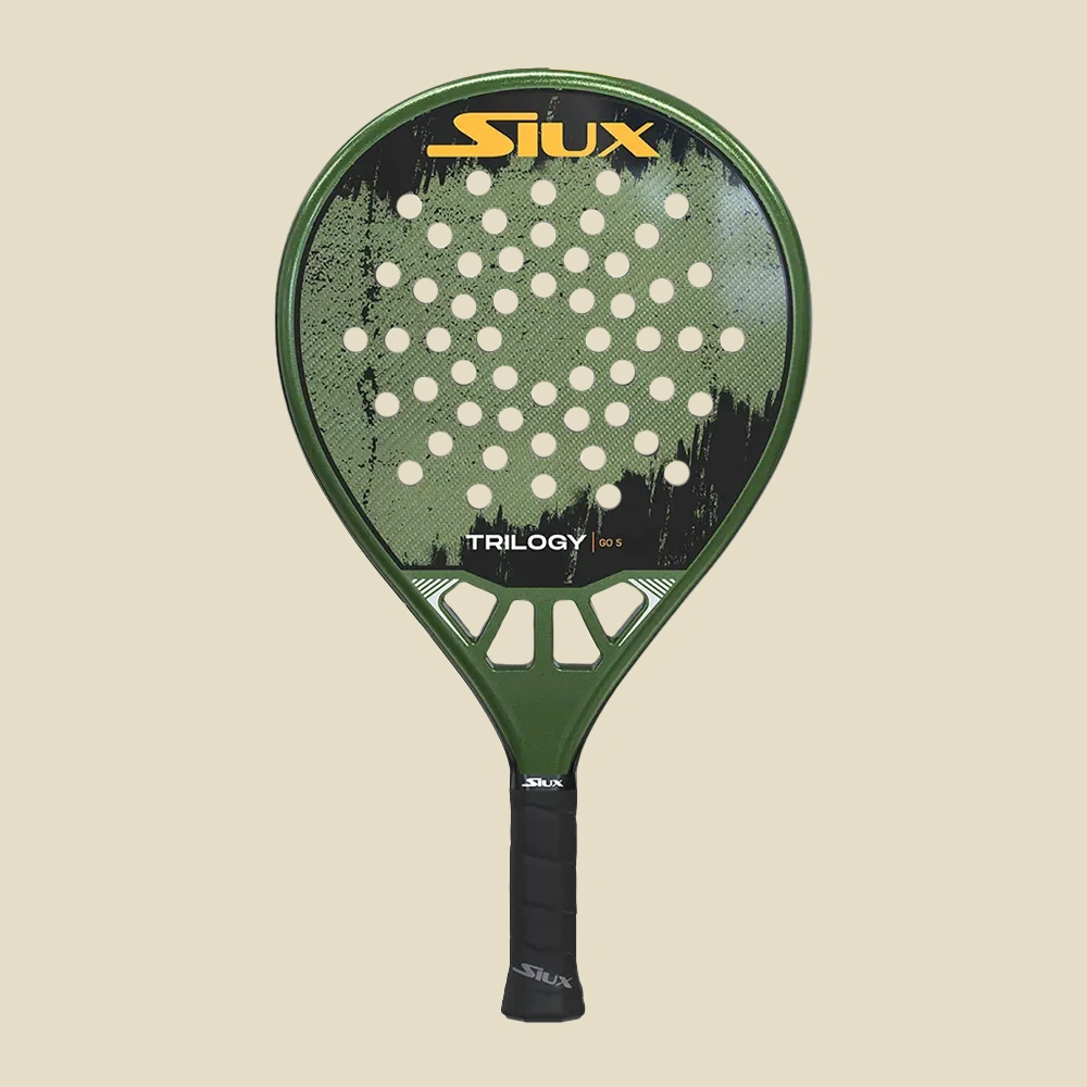 Siux Trilogy Go 5 yra padelio raketė, sukurta užtikrinti maksimalią kontrolę kiekvienoje žaidimo situacijoje. Raketės apvali forma ir žemas balansas leidžia ją labai lengvai valdyti, užtikrinant tikslius, stabilius ir greitos reakcijos smūgius.